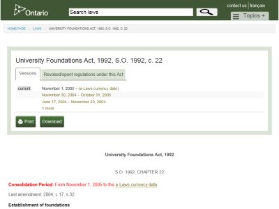 Ontario - University Foundations Act, 1992
