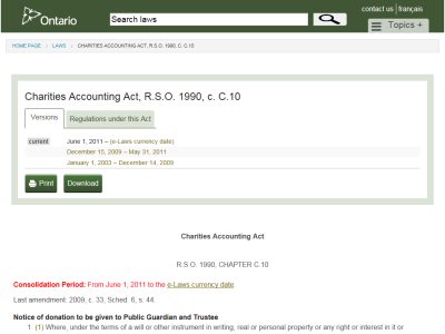 Ontario - Charities Accounting Act