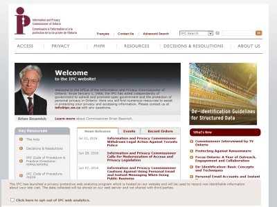 Provides an independent review of government decisions and practices concerning access and privacy, under the Freedom of Information and Protection of Privacy Act and the Municipal Freedom of Information and Privacy Protection Act. They resolve appeals, investigate privacy complaints, ensure compliance with the Acts, research access and privacy issues and educate the public about these laws